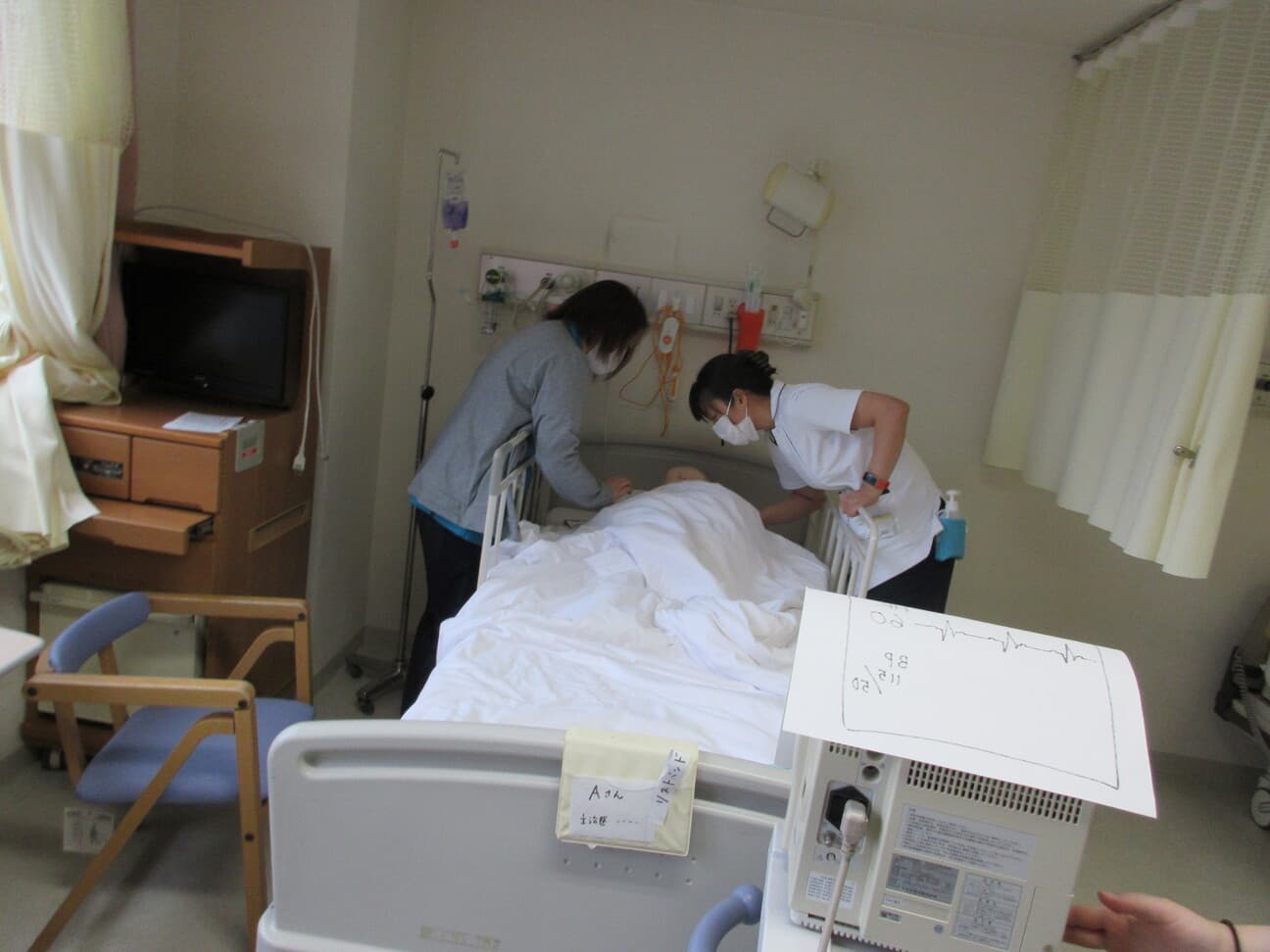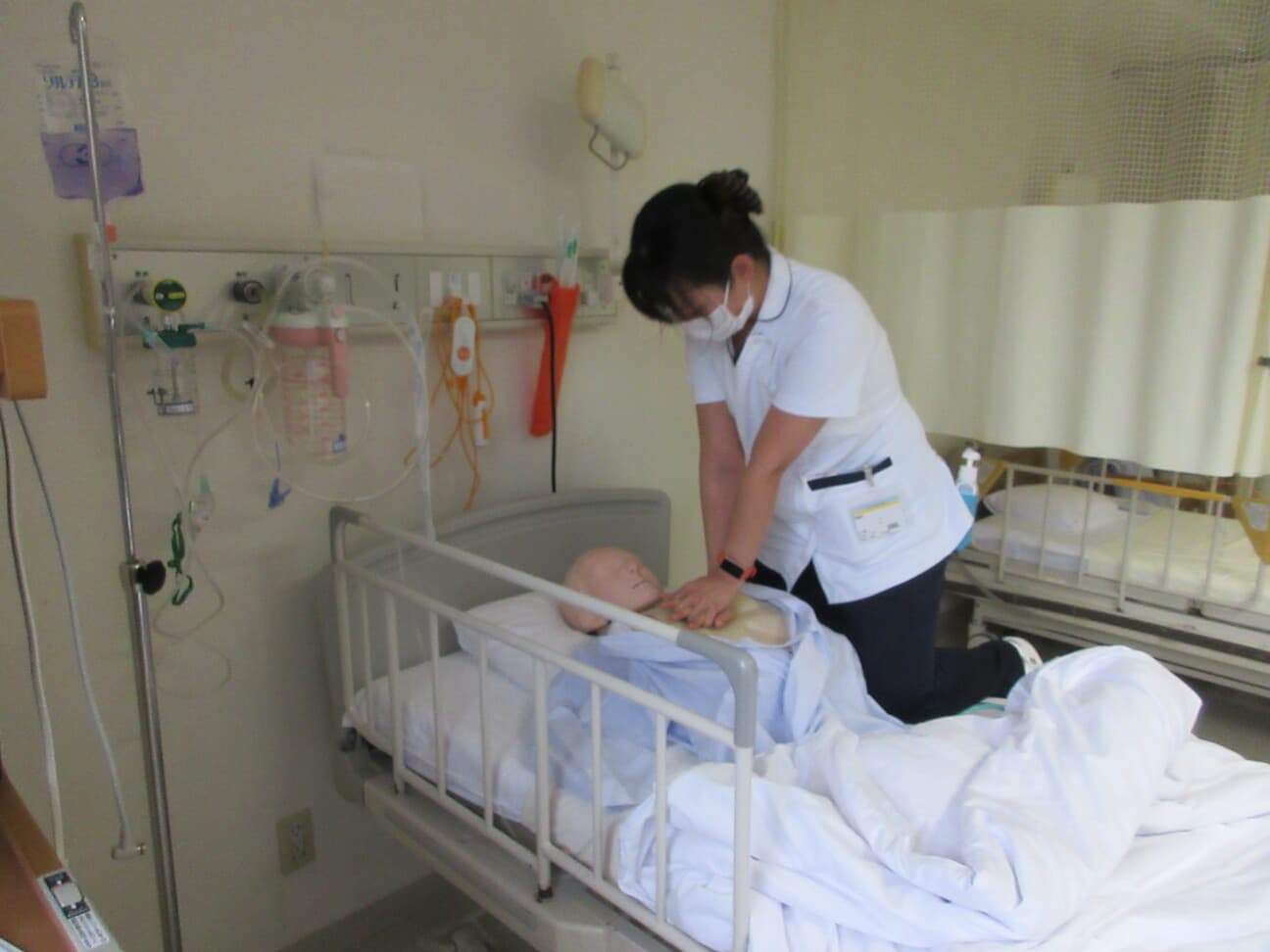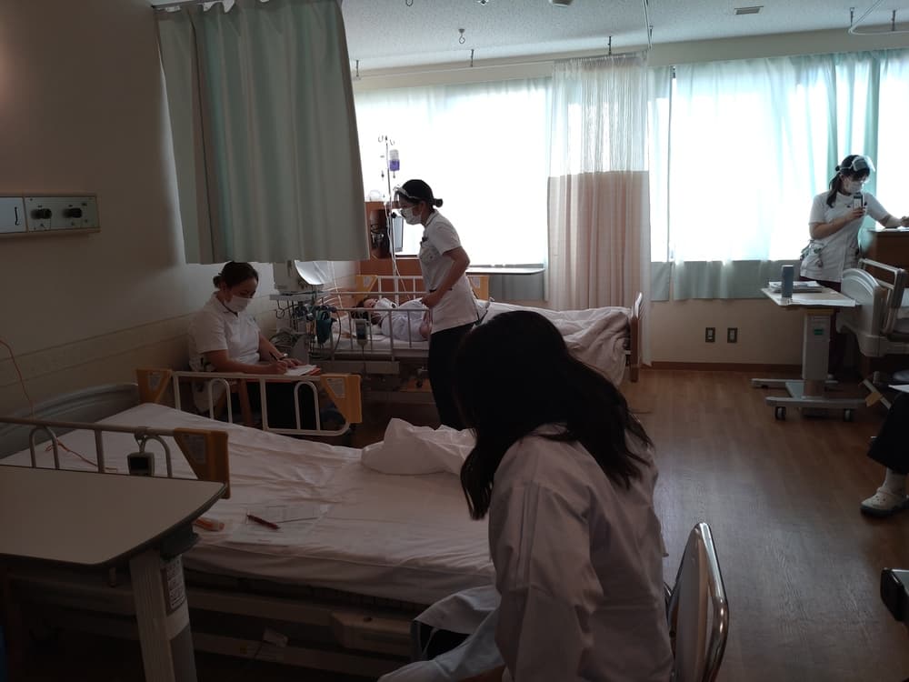 新人看護師教育システム 新人看護師研修の目的 看護部の理念、方針、 活動内容を把握し、社会人・組織人に必要な基礎知識を身につける。 新人教育スローガン 病院全体で育てよう!共に成長しよう! 支援体制 チーム支援型:部署の教育担当者・新人全体を支援するプリセプター以外には新人看護師1人に1人の指導者を付けず、チームに参画しながら新人を教育・支援します。 チーム内でそれぞれのメンバーが得意分野を指導するように役割分担がされています。 新人看護師卒後院内研修プログラム 入職式4月 入職式 (AM 院内・PM 関西3病院合同 byグランヴィア) 病院 (1日)オリエンテーション(就業規則・倫理・医療安全・感染) 看護部(5日)オリエンテーション 1ヶ月フォローアップ研修5月 1ヶ月フォローアップ研修 輸液ポンプ・シリンジポンプの取り扱い 3ヶ月フォローアップ研修6月 3ヶ月フォローアップ研修 リフレクション研修9月 リフレクション研修:ゲームをしながら、よかったこと・困ったこと、つらかったことなど同期で共有しよう 臨床心理士との面談:自身の心の内を聞いてもらおう 6ヶ月フォローアップ研修10月 多重課題1 複数患者を受け持ち、優先順位・応援依頼・フィジカルアセスメントし、判断・応援要請までを実践レベルで行います。 振り返り研修 実践後みんなで振り返り、2回目に活かして実践を繰り返す研修を実施します。 BLS・フィジカルアセスメント研修11月 メンタルヘルスケア(臨床心理士との面談) BLS・フィジカルアセスメント研修 救急看護認定看護師からフィジカルアセスメントの講義を受け、自分が実施したBLSの根拠づけと日々の観察を振り返ります。 救命士からBLSの講義を受け、実践を繰り返し行いながら、急変時の対応を学びます。 9ヶ月フォローアップ研修1月 振り返り研修2 10月に行った、多重課題1を基に、患者の急変に対して、時間切迫状況の中、優先順位・看護判断・患者への対応・応援と報告が行えることを目的にシュミレーションを繰り返し行動レベルまで落とし込めます。 1年間の振り返り2月 1年間の振り返り(看護実践発表) 事例を通して自分の看護を振り返り、1年間の頑張りに対して温かい言葉を頂きます。 看護部長から卒後研修の修了証書を受け、2年目に向けての決意を新たにします。